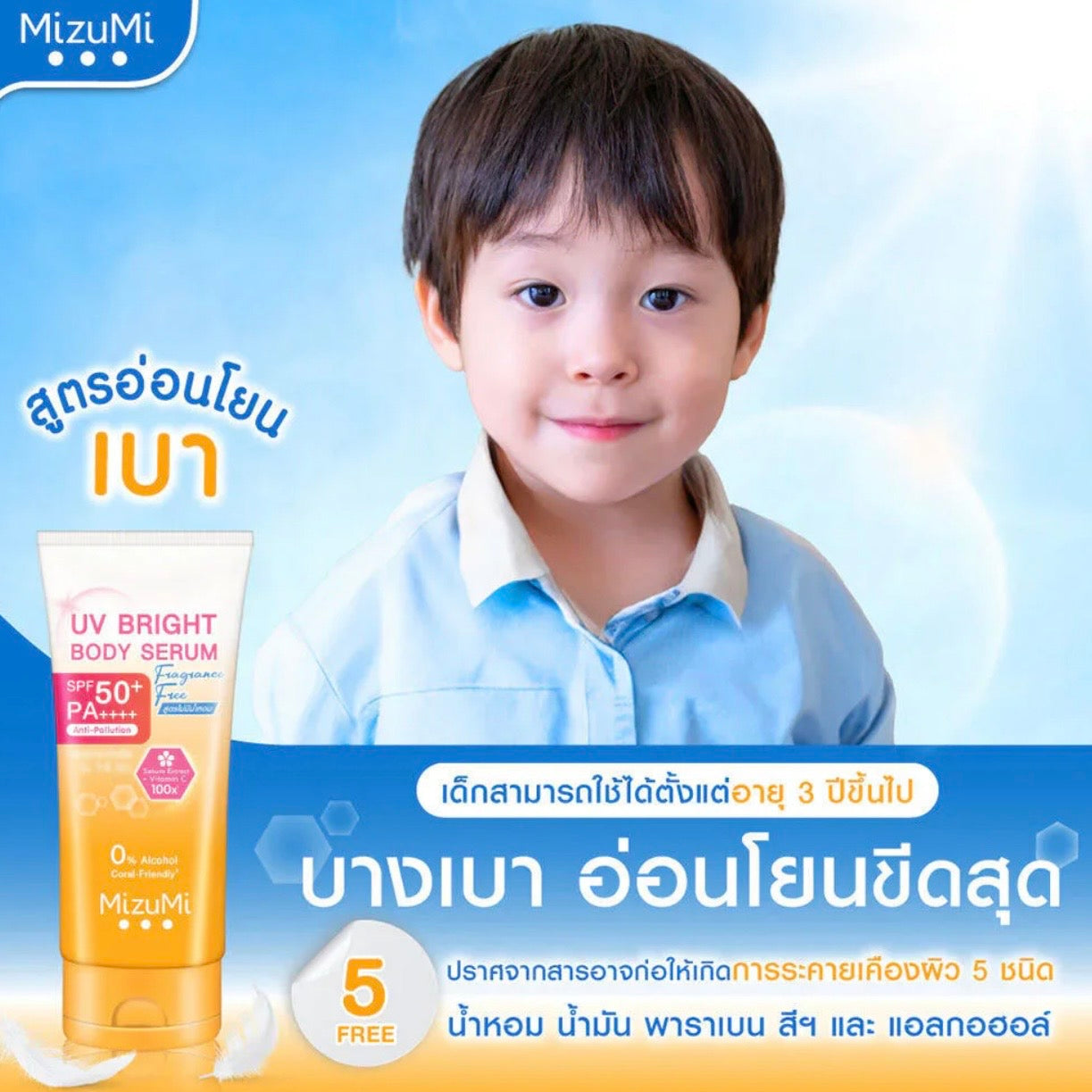 ครีมกันแดดผิวกายสูตรอ่อนโยน ไม่มีน้ำหอม เนื้อบางเบา สบายผิว ปกป้องผิวจากรังสี UVA/UVB และมลภาวะด้วย Hybrid Sunscreen SPF50+ PA++++ ไม่วอกเมื่อเซ็ตตัว พร้อมเทคโนโลยี Anti-Pollution เคลือบผิวลดผลกระทบจากฝุ่นควัน ผสานสารสกัดดอกซากุระจากญี่ปุ่นและ Kakadu Plum จากออสเตรเลีย ช่วยให้ผิวดูกระจ่างใส สีผิวสม่ำเสมอ ผ่านการทดสอบโดยแพทย์ผิวหนัง และปราศจากสารระคายเคือง 5 ชนิด (แอลกอฮอล์ น้ำหอม น้ำมัน พาราเบน สีสังเคราะห์)