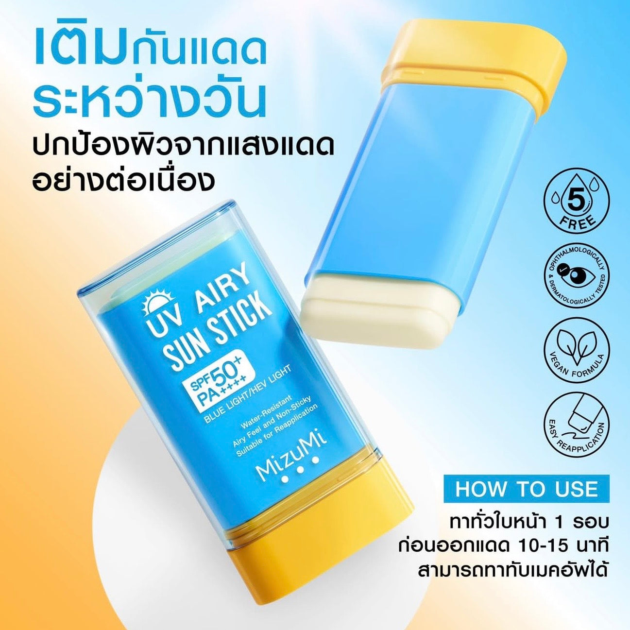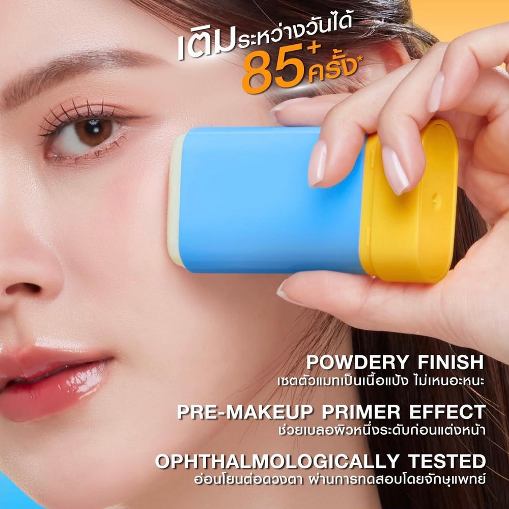 กันแดดแบบแท่ง เนื้อบางเบา เกลี่ยง่าย ไม่เหนอะหนะ ไม่เป็นคราบ ช่วยปกปิดรูขุมขน เติมระหว่างวันได้ตามต้องการ ปกป้องผิวจากรังสี UVA1/UVA2/UVB แสงสีฟ้า และมลภาวะ กันน้ำ กันเหงื่อ ใช้ได้ทั้งผิวหน้าและผิวกาย เหมาะสำหรับผิวบอบบางแพ้ง่ายและเป็นสิว ปราศจากแอลกอฮอล์ น้ำหอม น้ำมัน พาราเบน และสีสังเคราะห์
