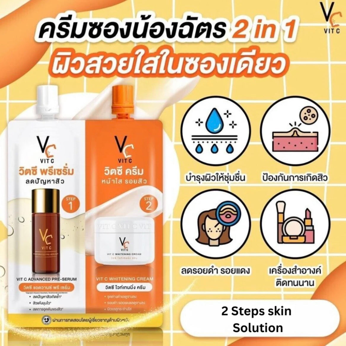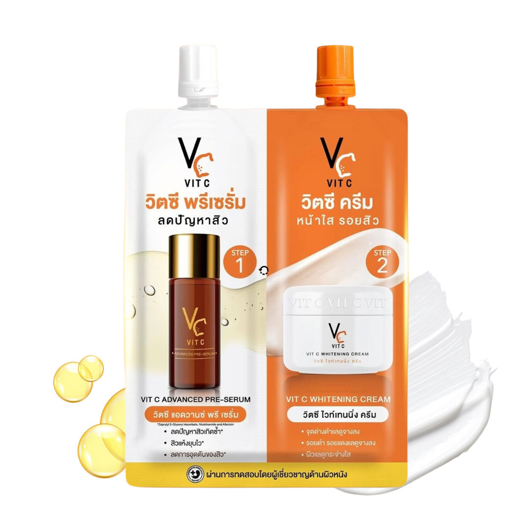 เซตดูแลผิววิตามินซีแบบ 2 ขั้นตอน ช่วยดูแลปัญหาสิว พร้อมฟื้นบำรุงผิวให้ดูกระจ่างใส เนื้อบางเบา ซึมไว อ่อนโยน เหมาะสำหรับทุกสภาพผิว รวมถึงผิวแพ้ง่าย ใช้ได้ทุกเพศทุกวัย ปราศจากแอลกอฮอล์ พาราเบน ซิลิโคน มิเนอรัลออยล์ และ DMDM